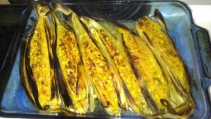 Gather yourself four or five ears of sweet corn. Strip off the husks, taking care to keep them whole. Soak said husks in sweet tea for at least one hour.